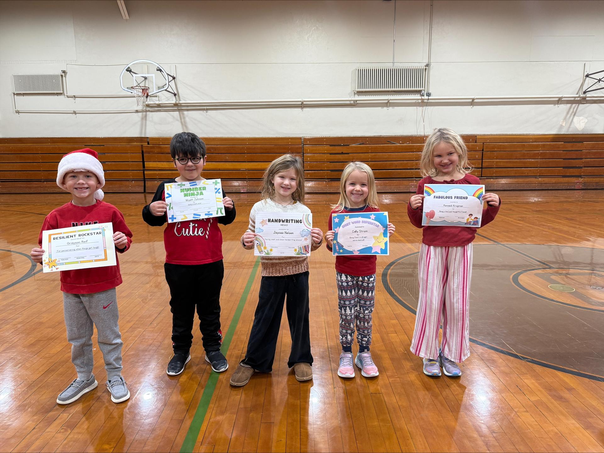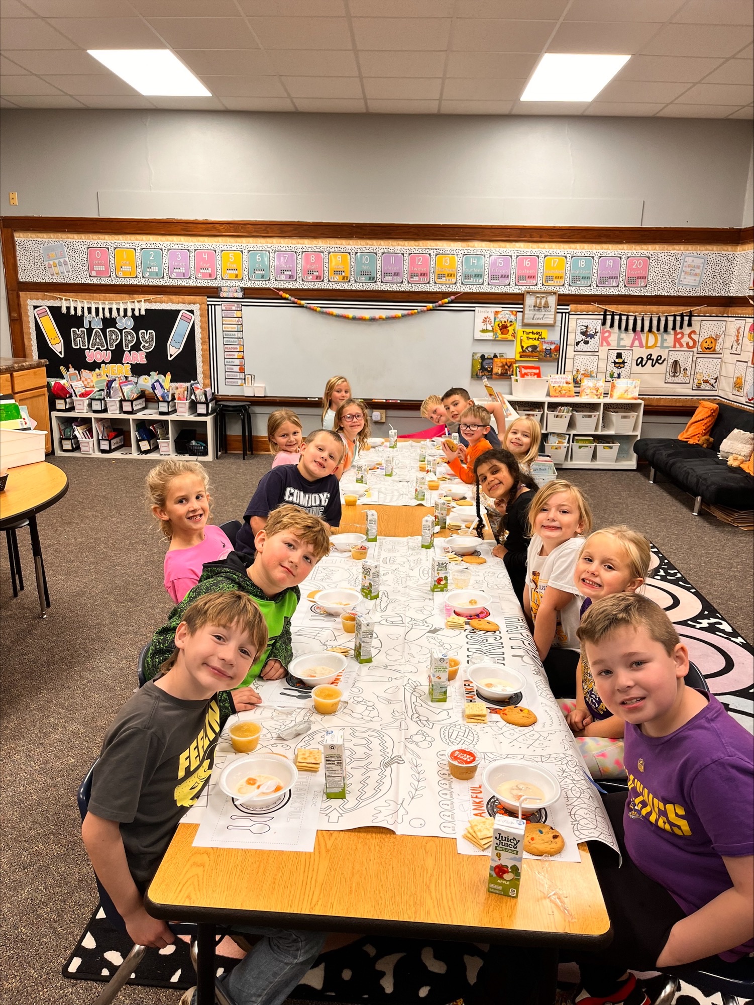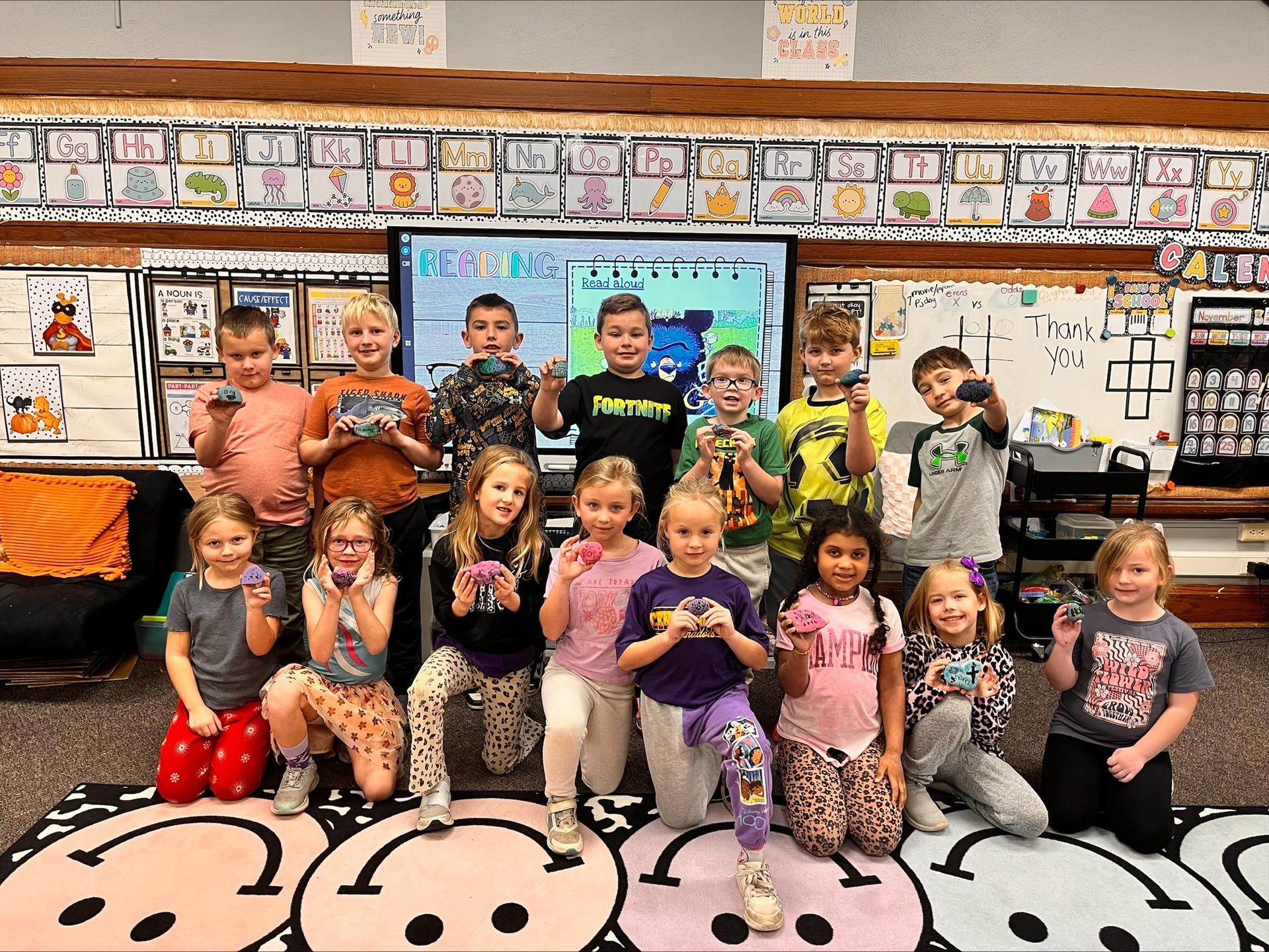 First graders read the story "Stone Soup" last quarter and enjoyed a Stone Soup Feast together. They also celebrated World Kindness Day by making thank you pictures for staff and painting rocks to hide around town.