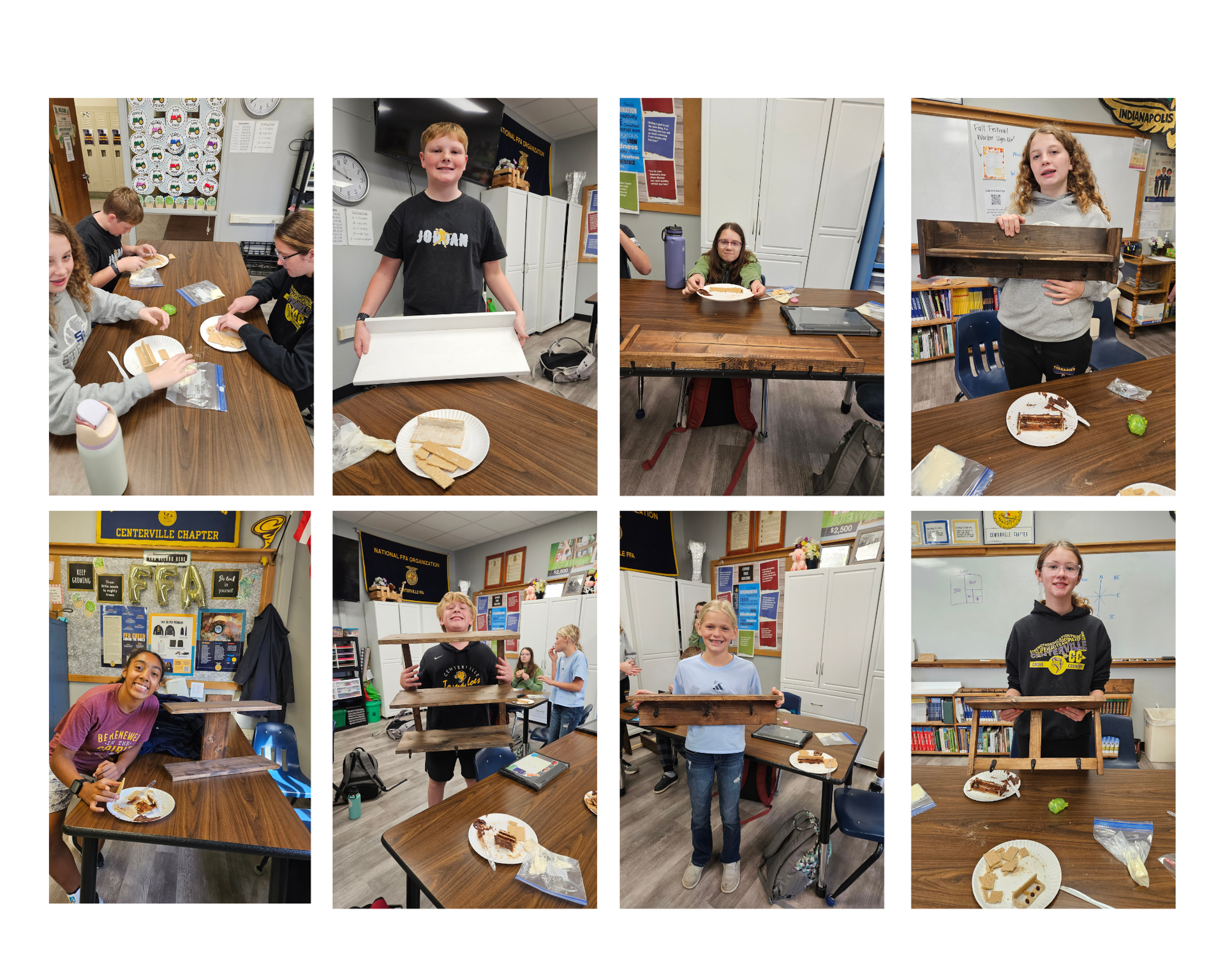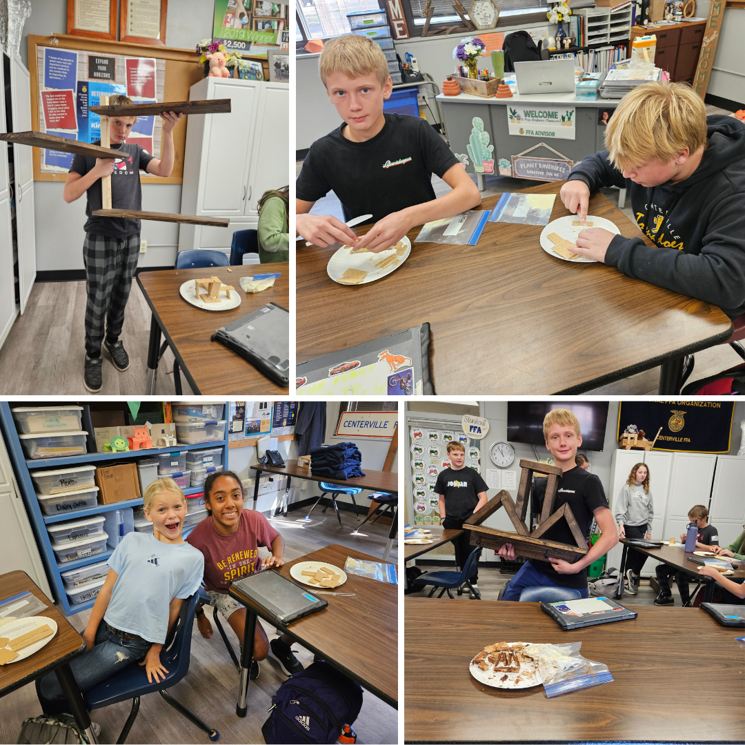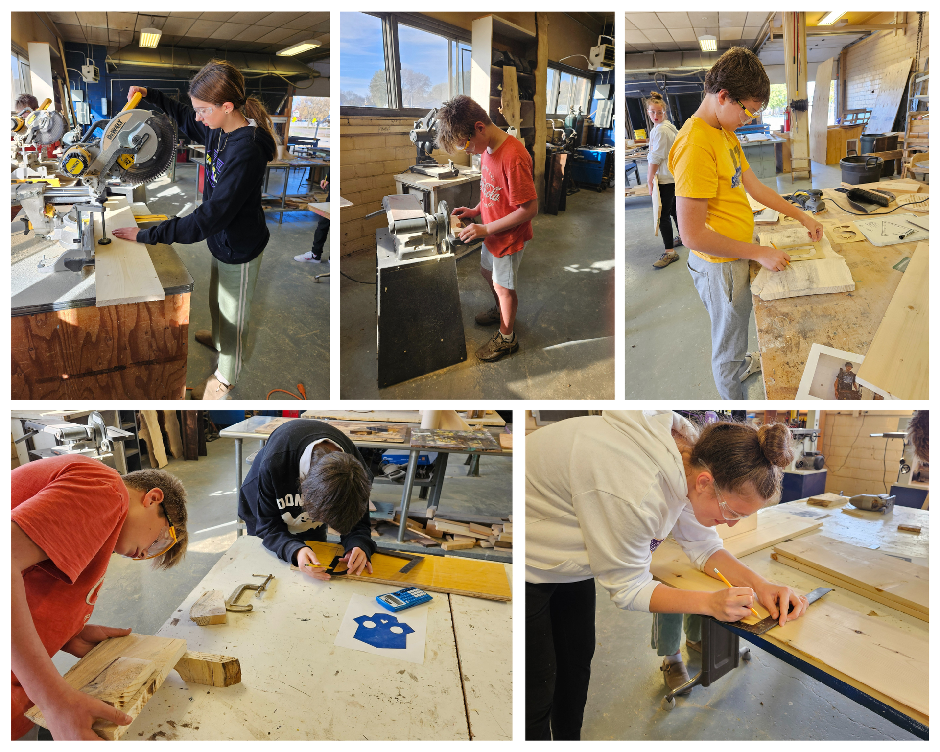 MS/HS Ag Happenings! 8th graders working on wood projects, Ag Mechanics students doing a concrete boat lab to see if their design could float in water and hold weight, and 7th graders making a shelf.